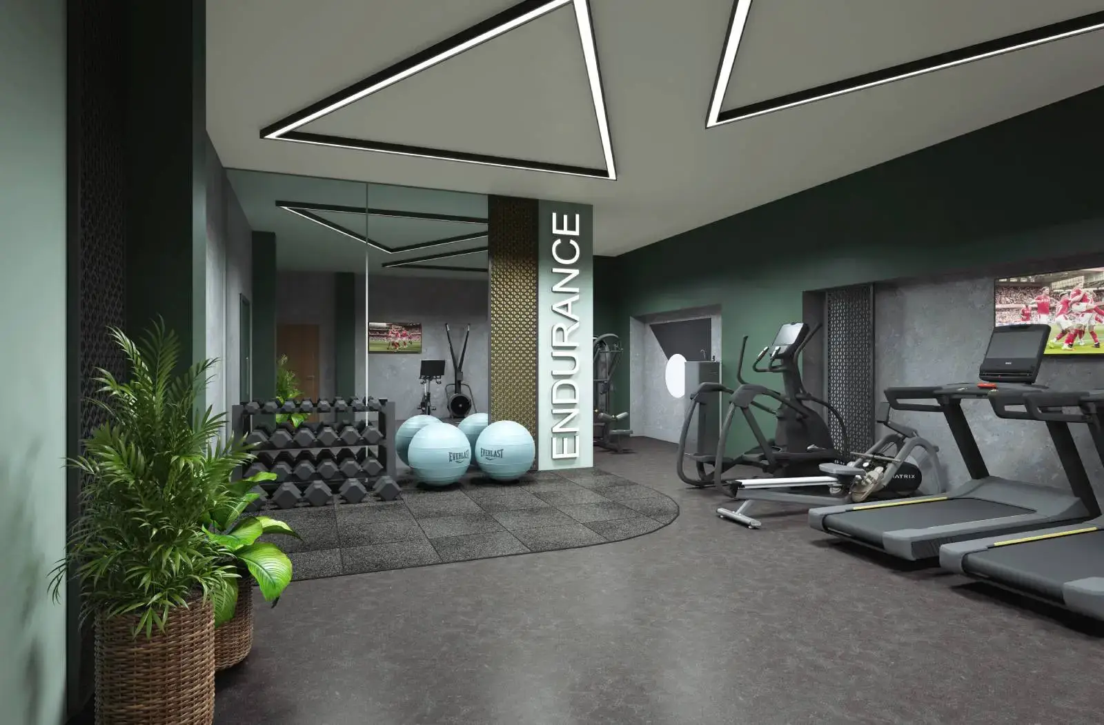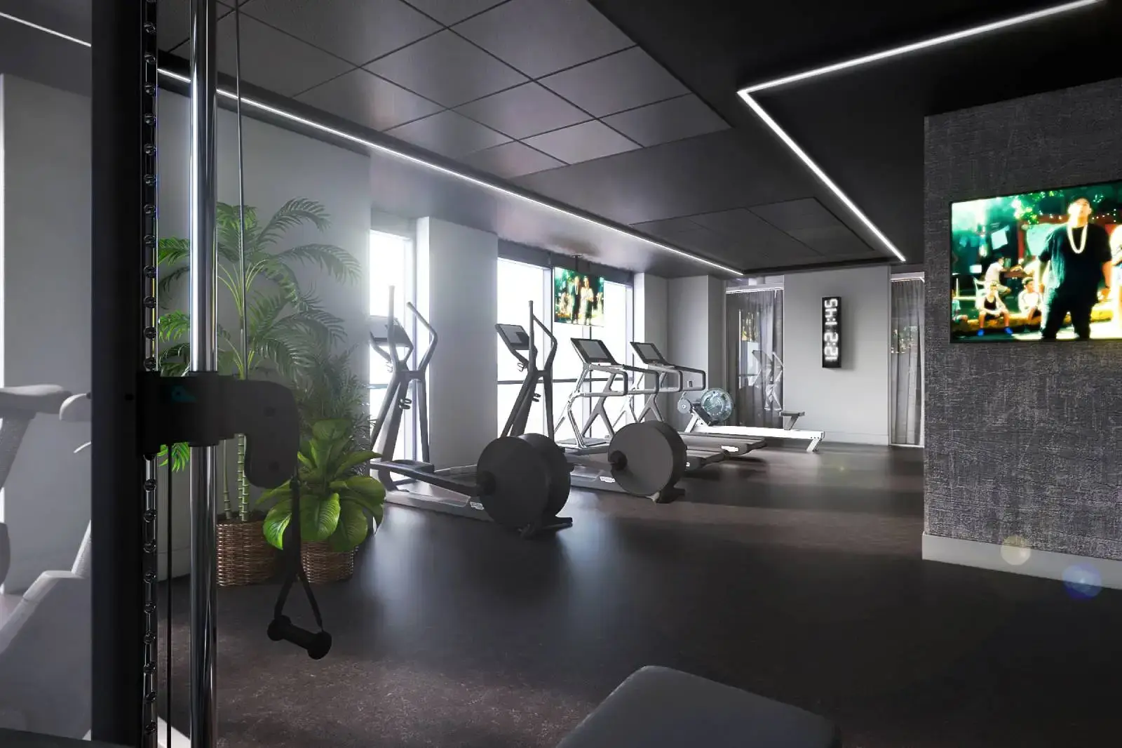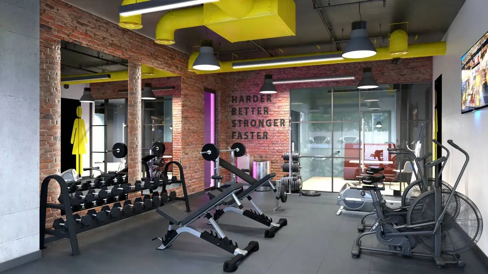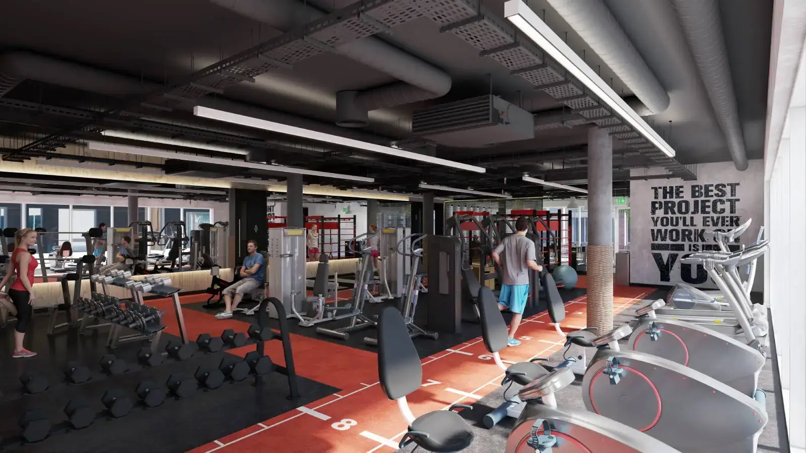 High-fidelity gymnasium visualisation showcasing realistic design, lighting, and equipment for immersive planning, simulation, and architectural presentation.