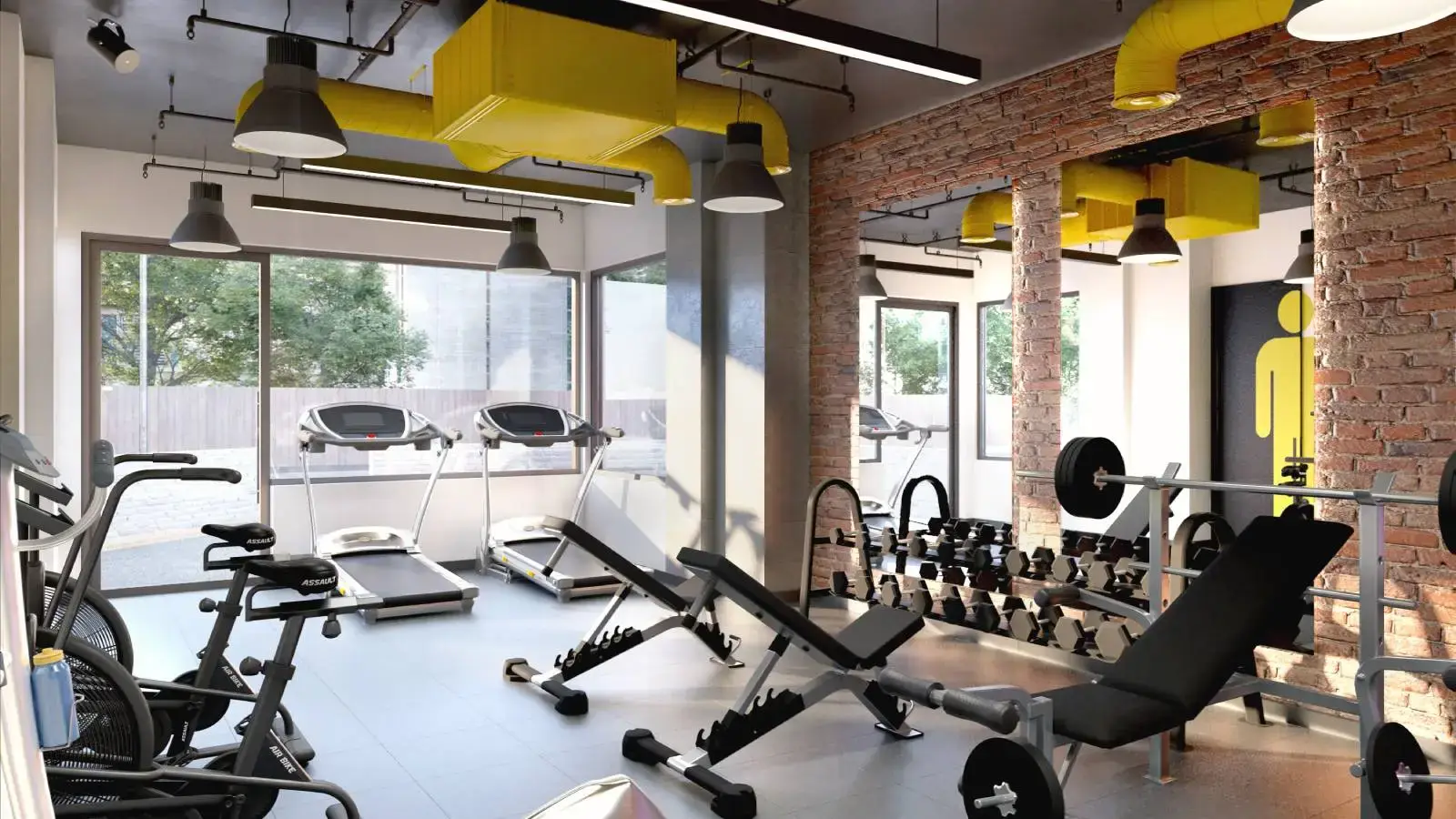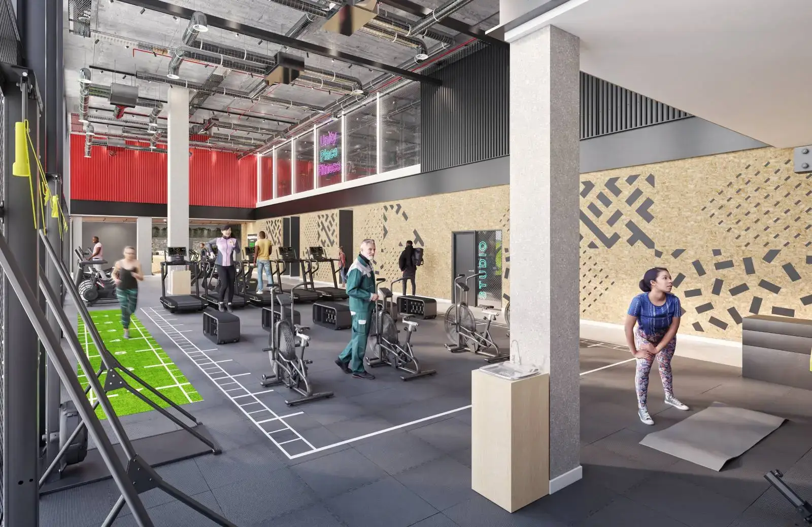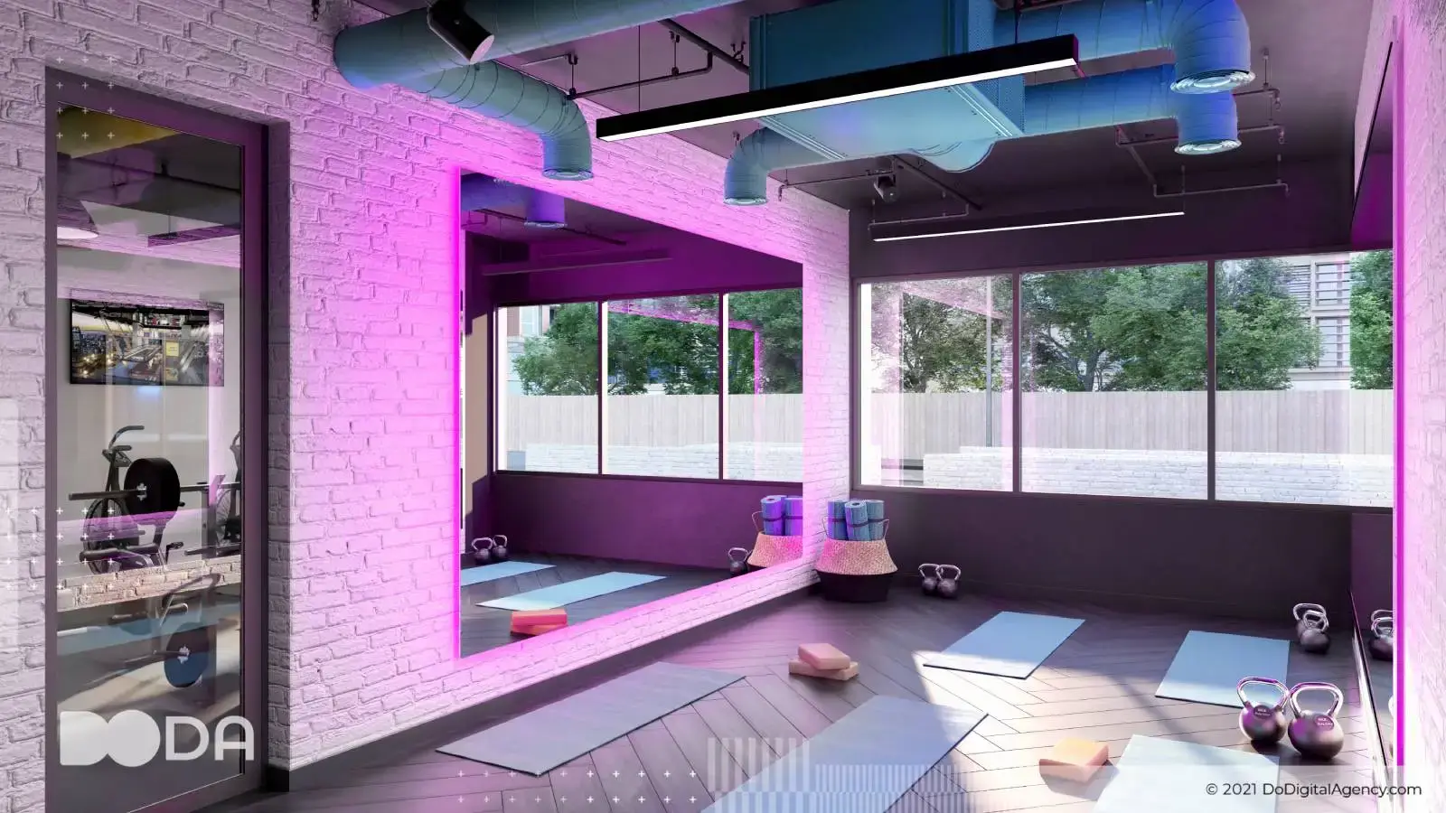 High-fidelity gymnasium visualisation showcasing realistic design, lighting, and equipment for immersive planning, simulation, and architectural presentation.