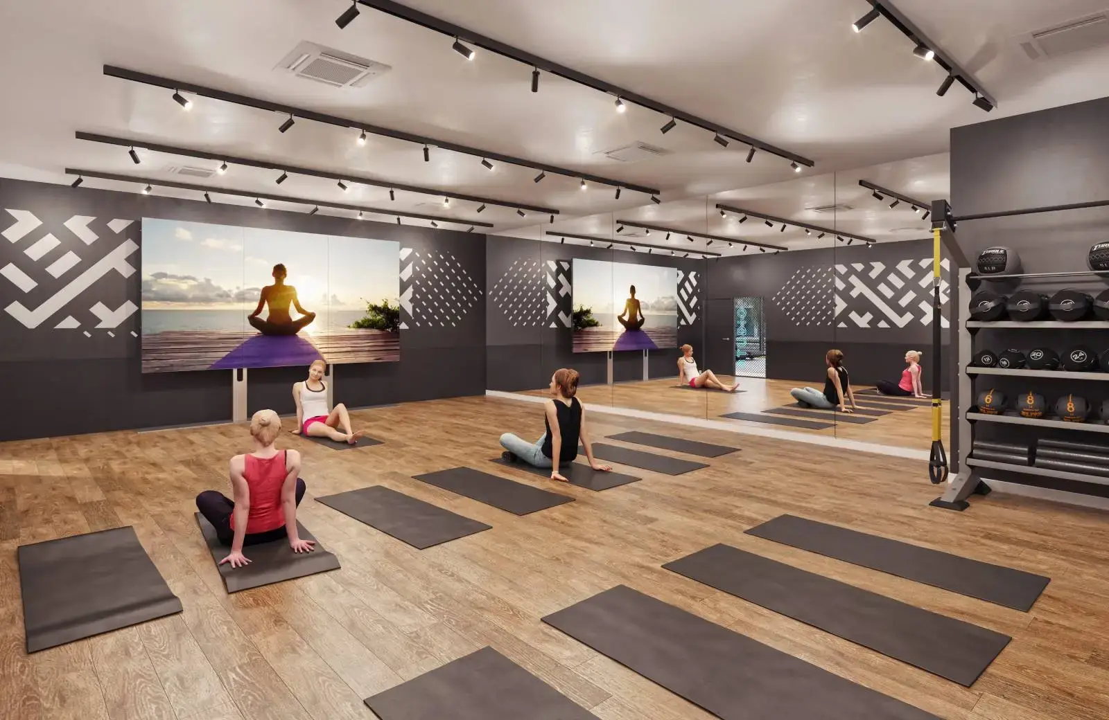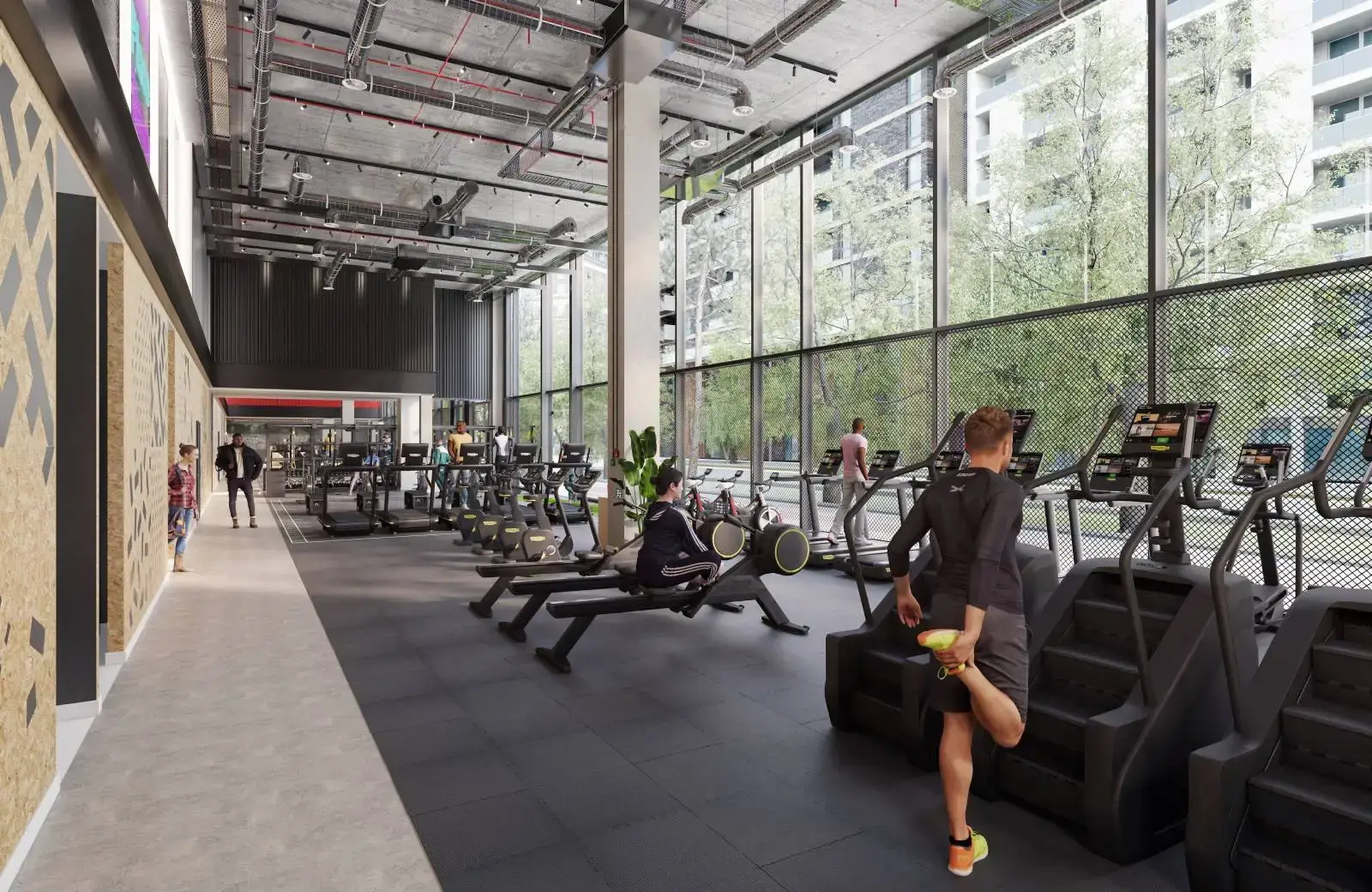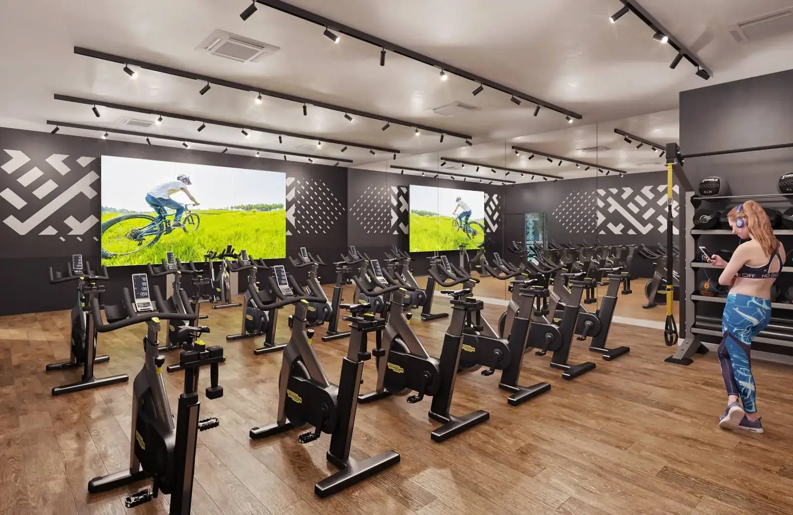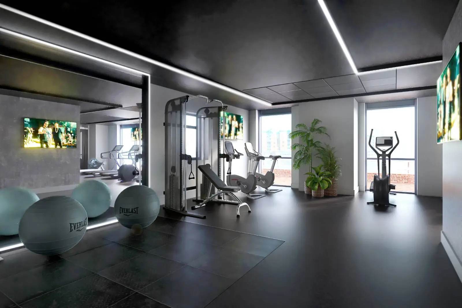 High-fidelity gymnasium visualisation showcasing realistic design, lighting, and equipment for immersive planning, simulation, and architectural presentation.