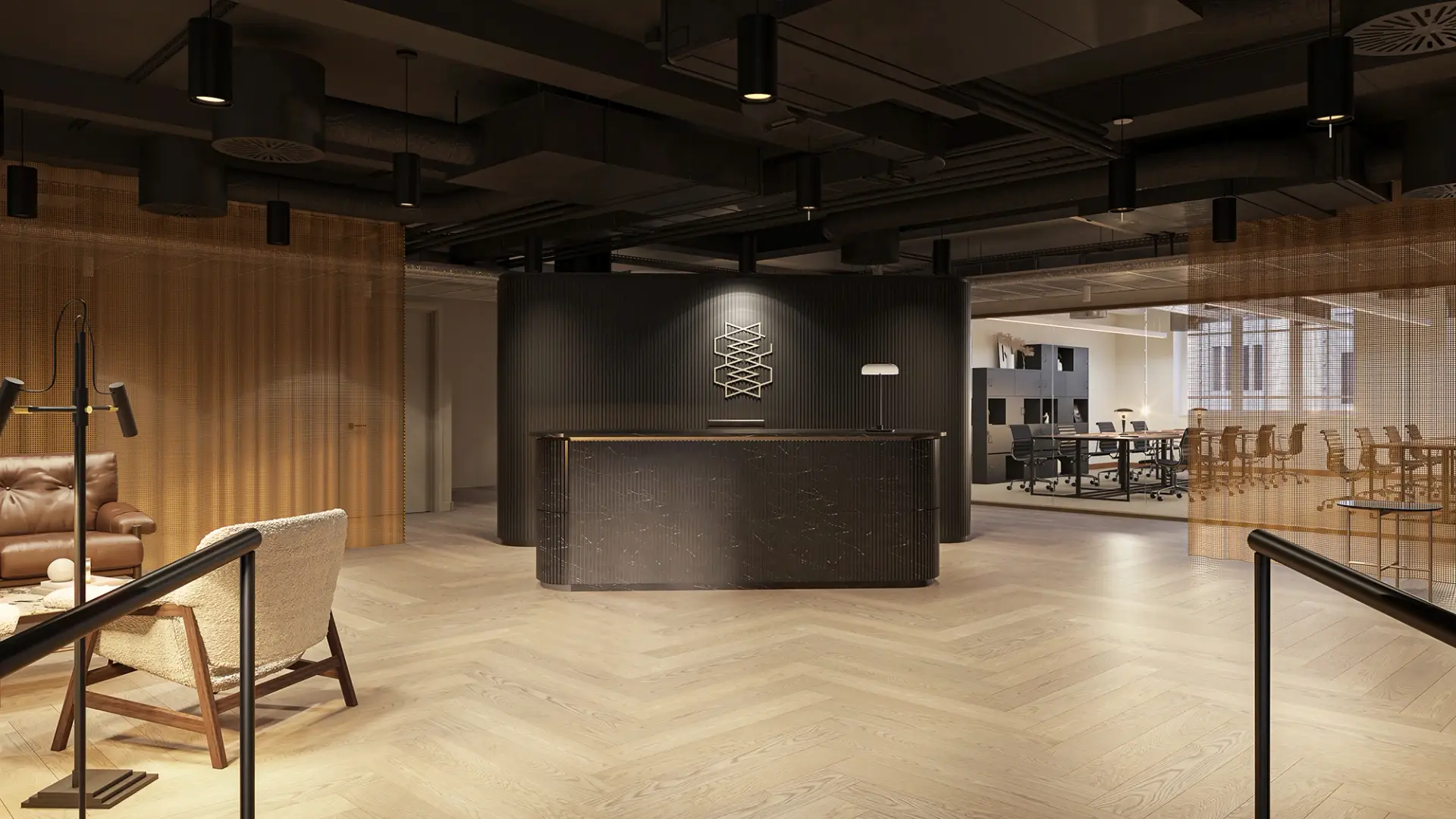 Deliver office visualisations that showcase contrast, material, and luxury to elevate your workspace design today.