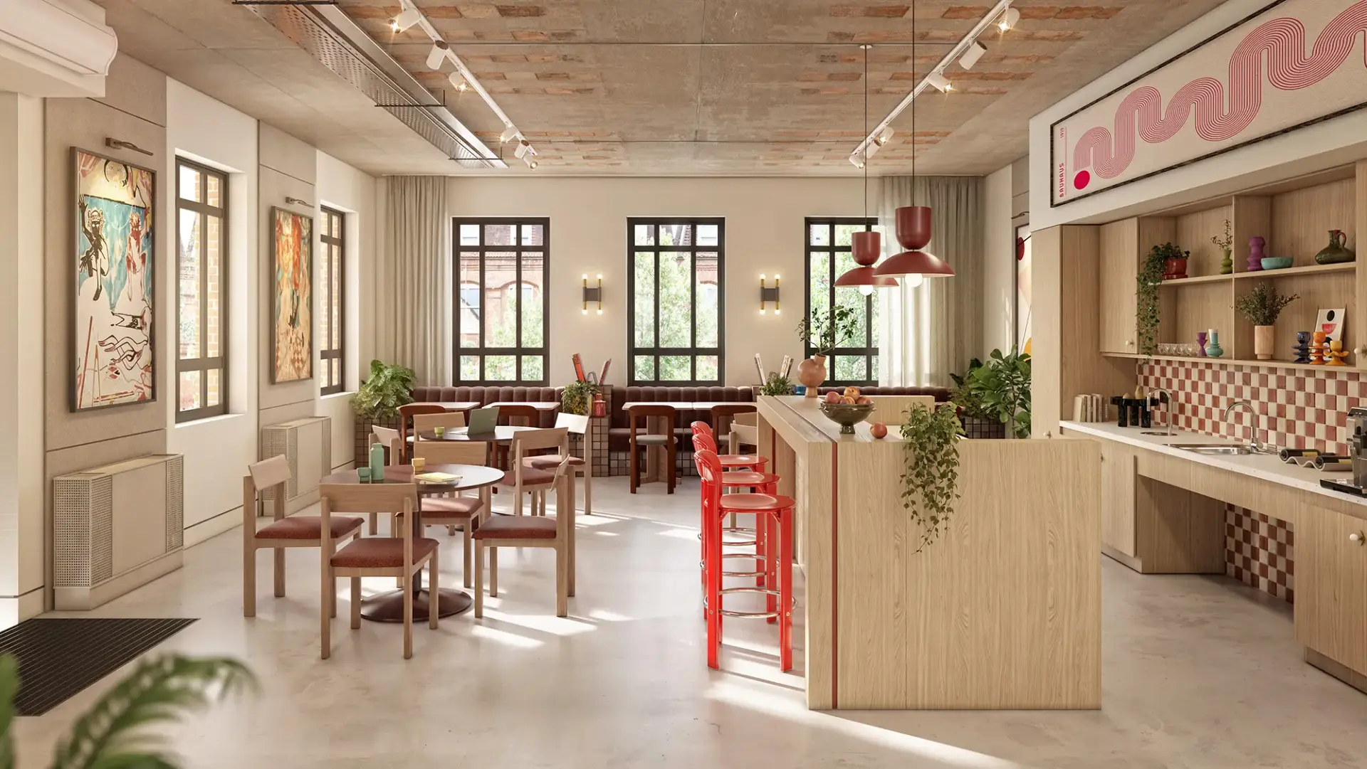 Discover a refined take on Industrial Loft CGI living—blending industrial structure with soft textures, warm tones, and social, open-plan design that feels both stylish and effortlessly livable.