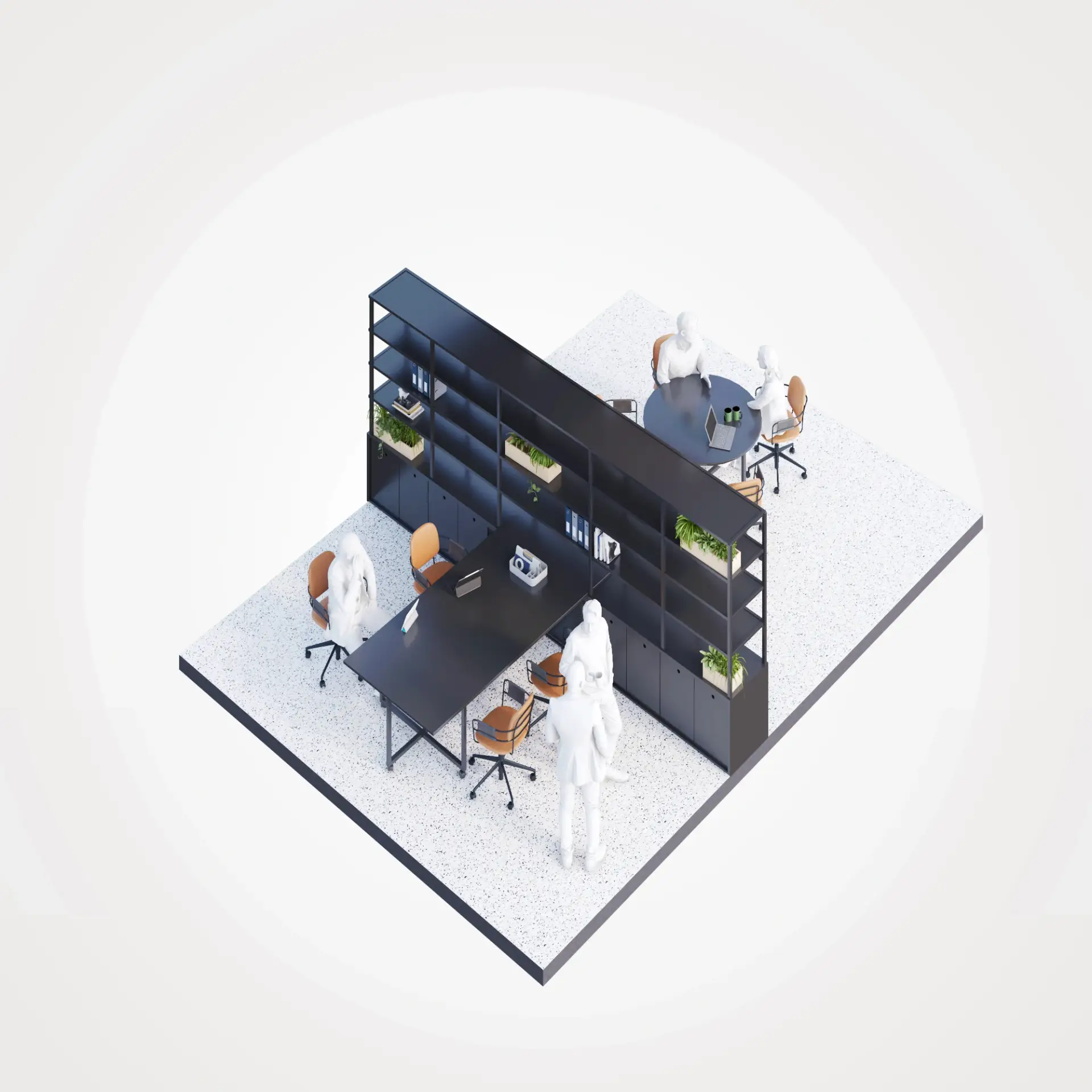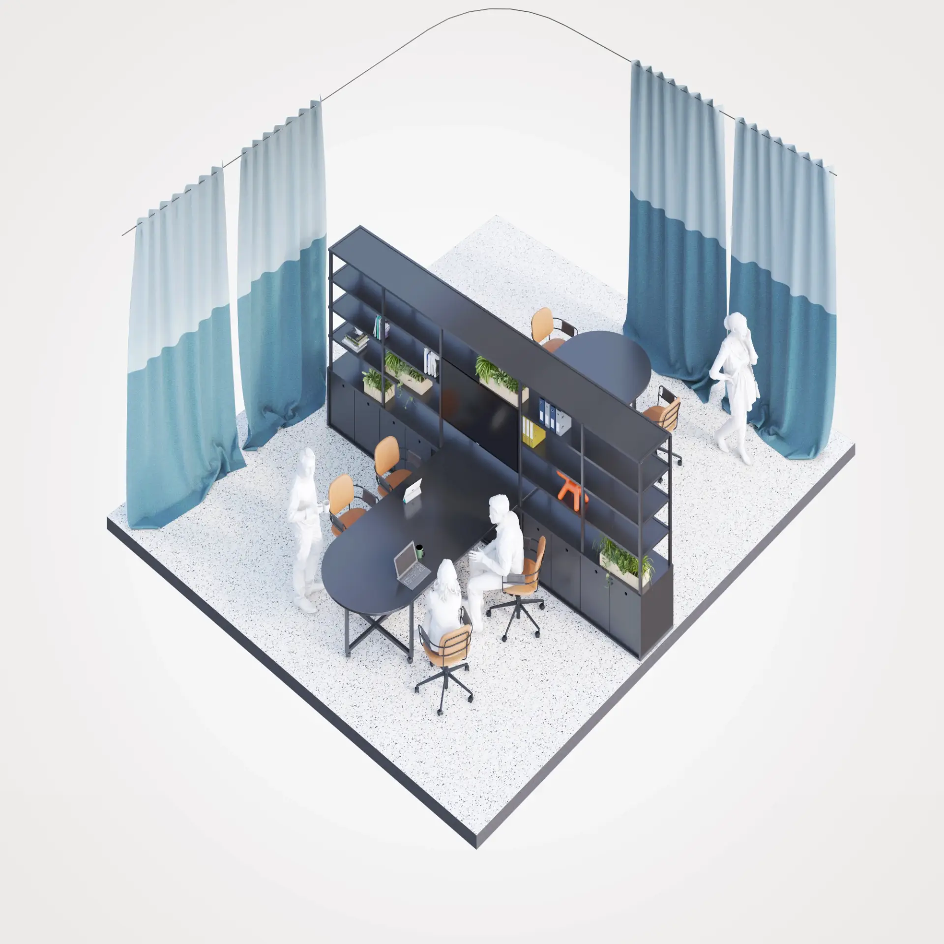 Simple, Informative Isometric Office Scenarios