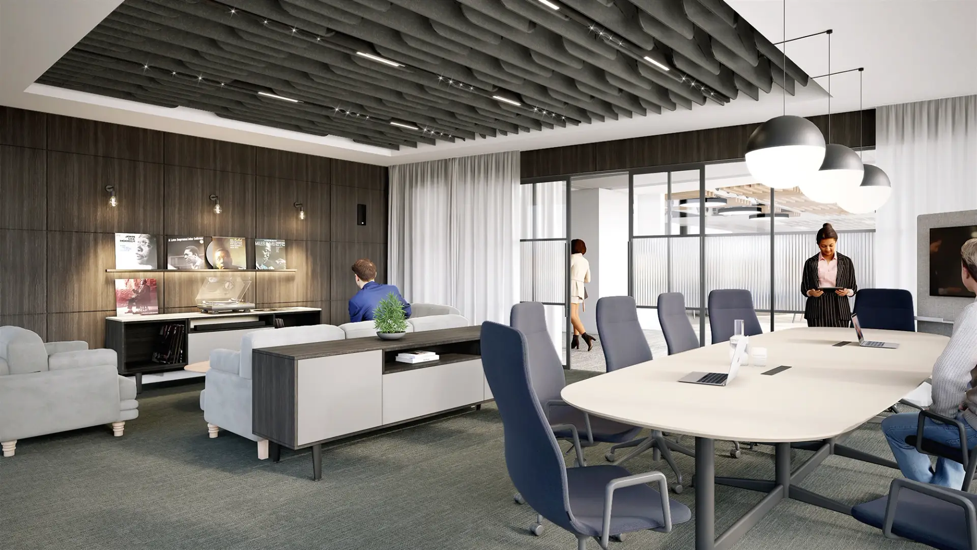 We developed a series of high-end visualisations for a well-known solicitors practice, focused on creating a workspace that feels structured, refined, and highly professional. The design is centred around clean architectural lines and carefully composed spatial layouts.