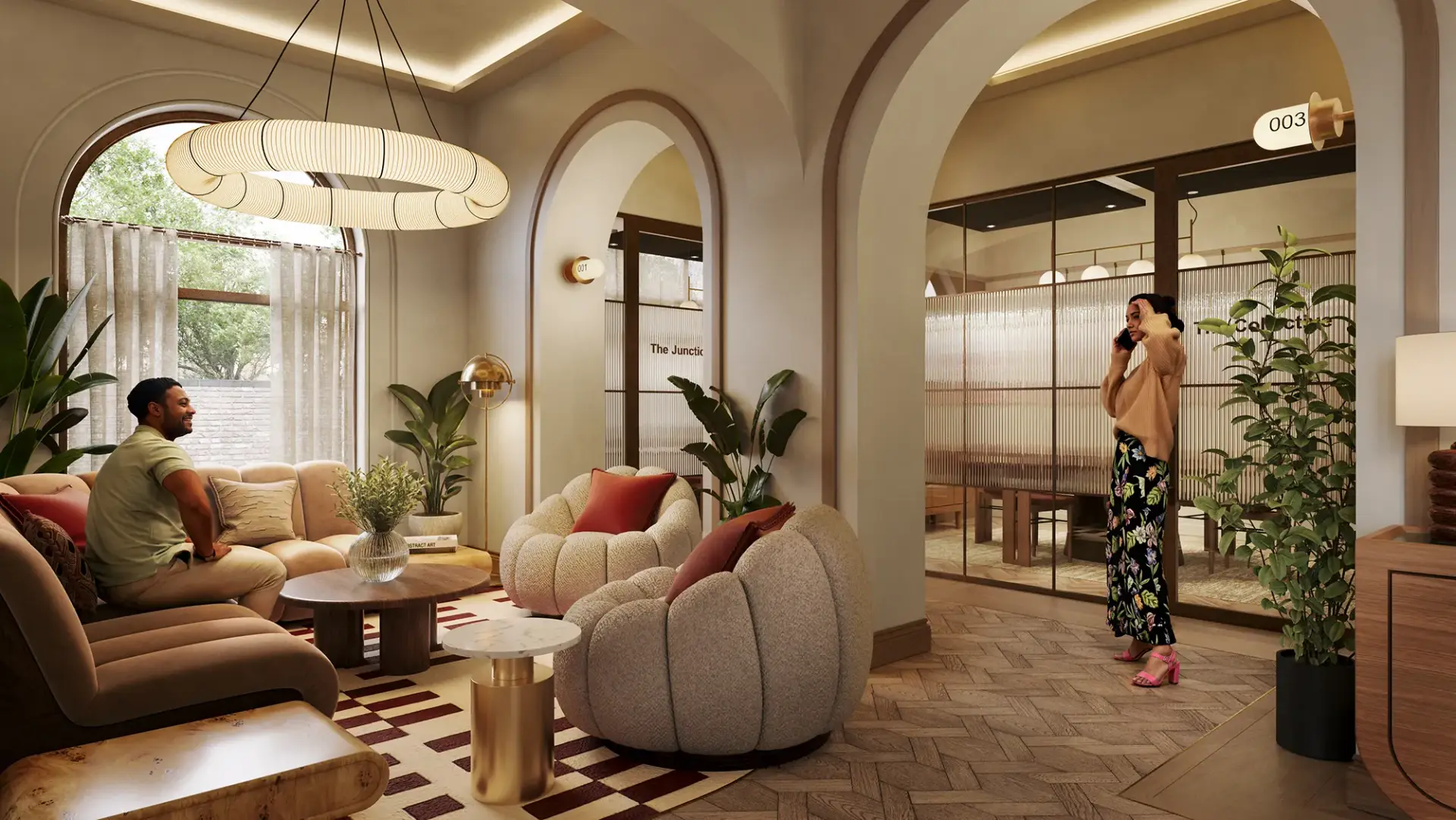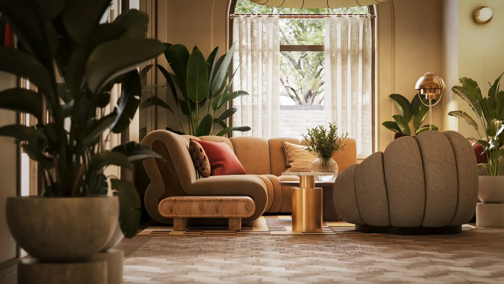 Rich materials, flowing fabrics, and soft lighting combine to create immersive visualisations that elevate perception, communicate design intent, and bring tactile architectural concepts to life before they exist.