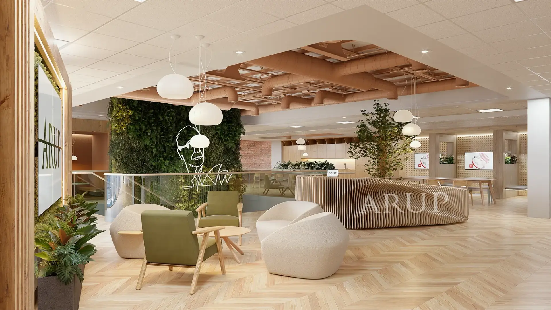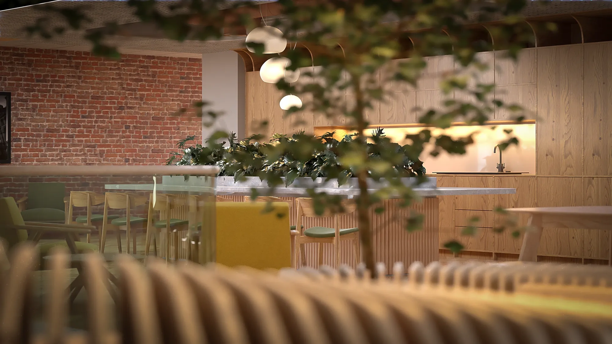 Through photorealistic office CGI and material-led workplace visualisation, natural light is maximised to enhance clarity and wellbeing. The result is a bright, inviting space that supports productivity while reflecting a contemporary and forward-thinking organisational identity.