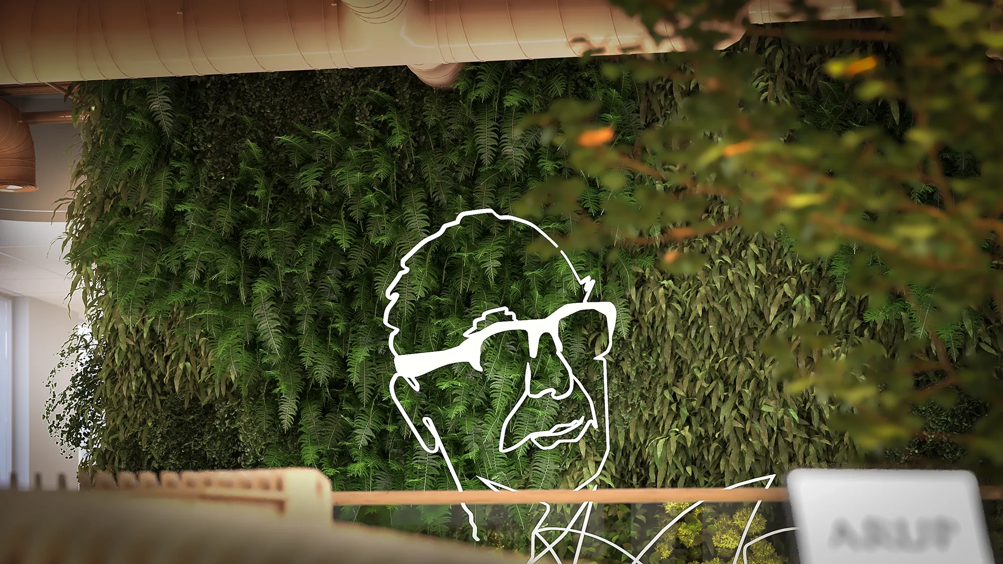 Green foliage is integrated throughout the workspace to introduce a sense of nature, softening the architecture and improving the overall user experience. This is complemented by the intentional exposure of mechanical and electrical services.