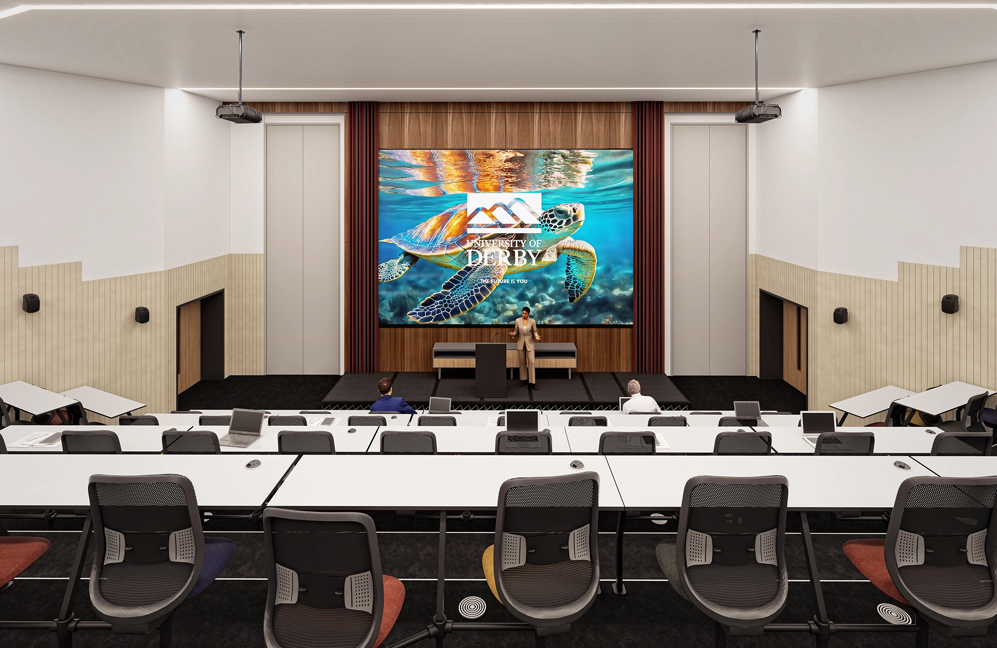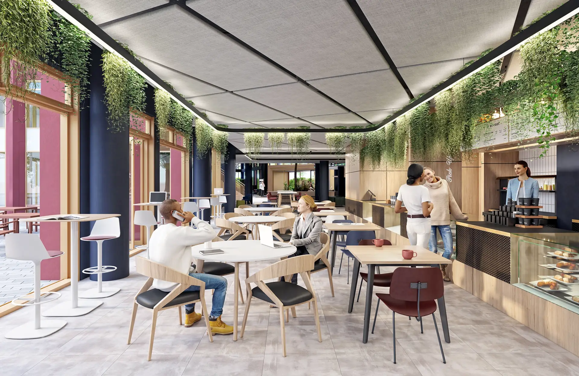 Through photorealistic architectural CGI and education-focused visual storytelling, we captured a design that feels both exciting and sophisticated. The space reflects the mature nature of the university, balancing scale and openness with refined material choices and a calm, considered aesthetic.