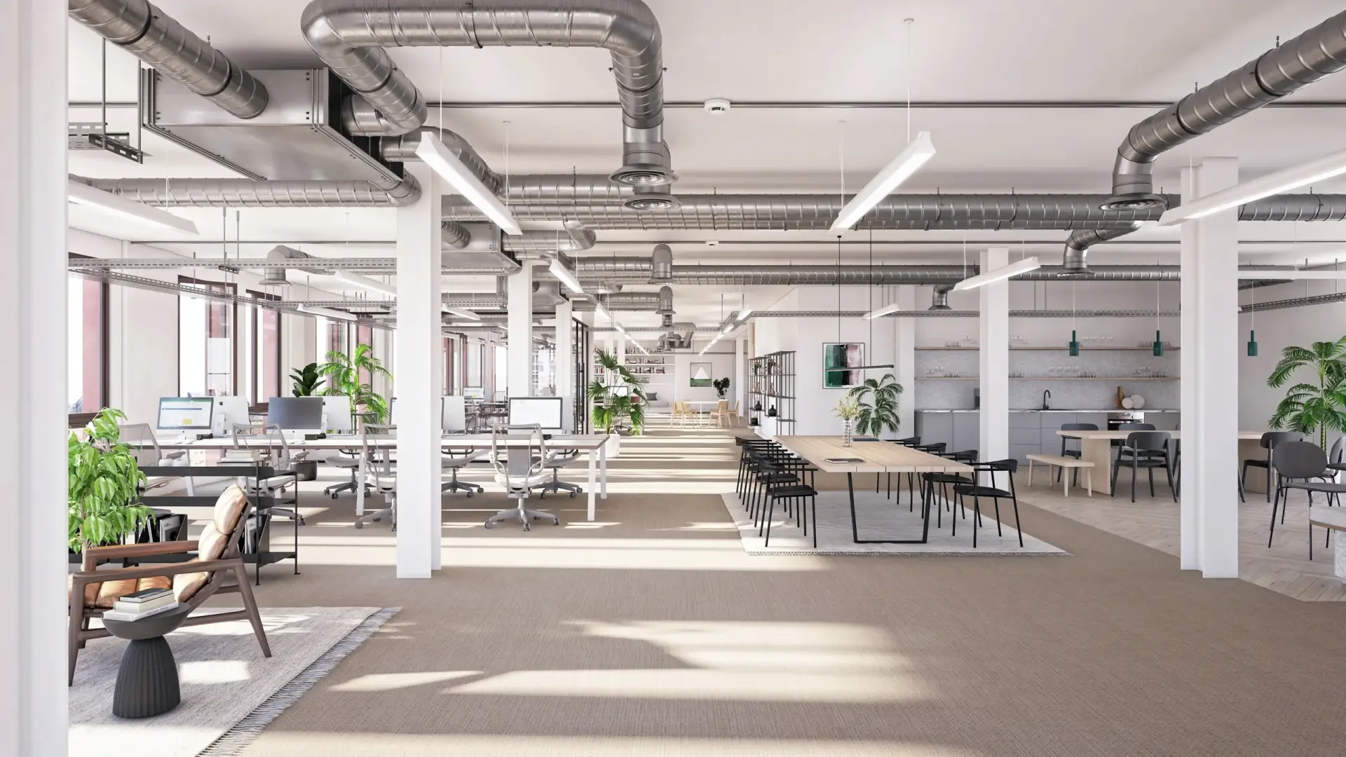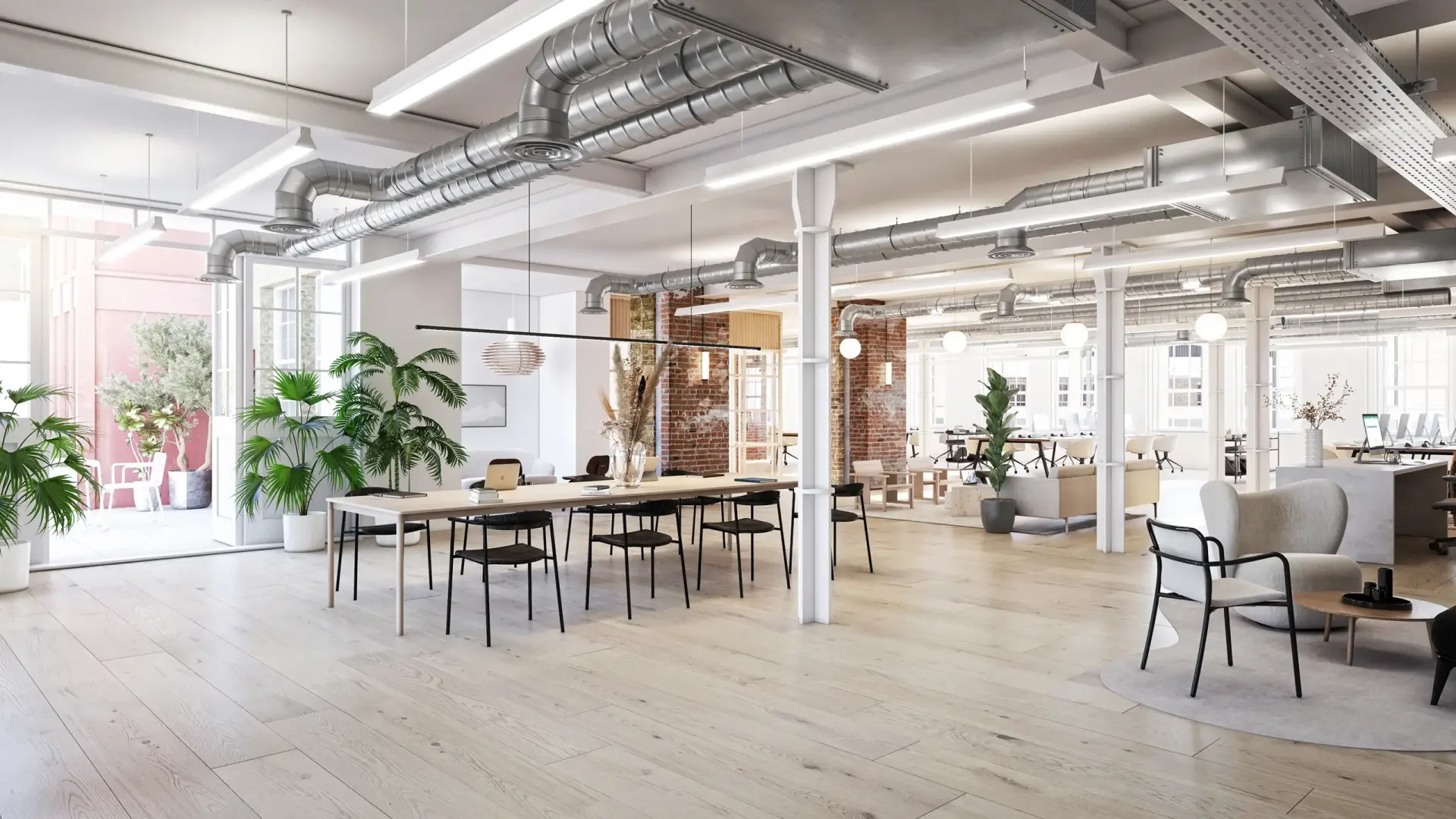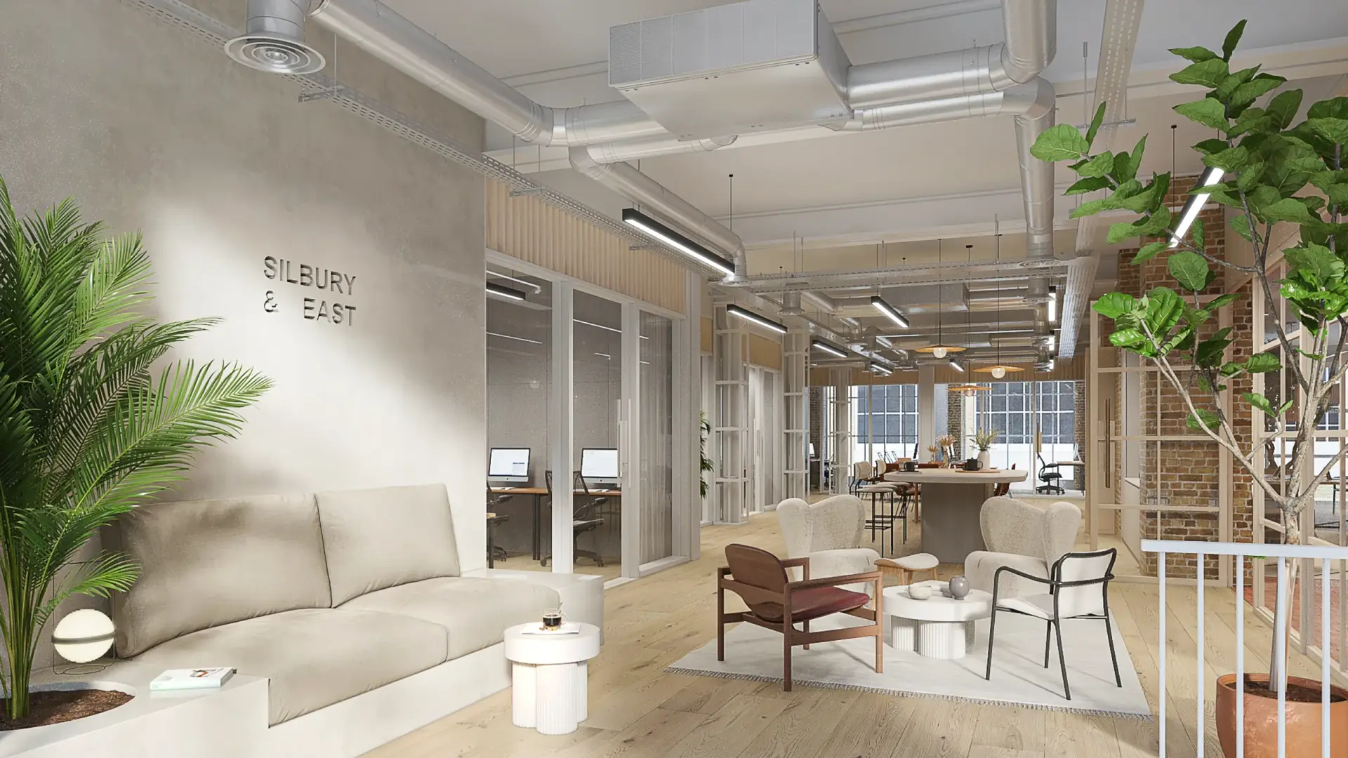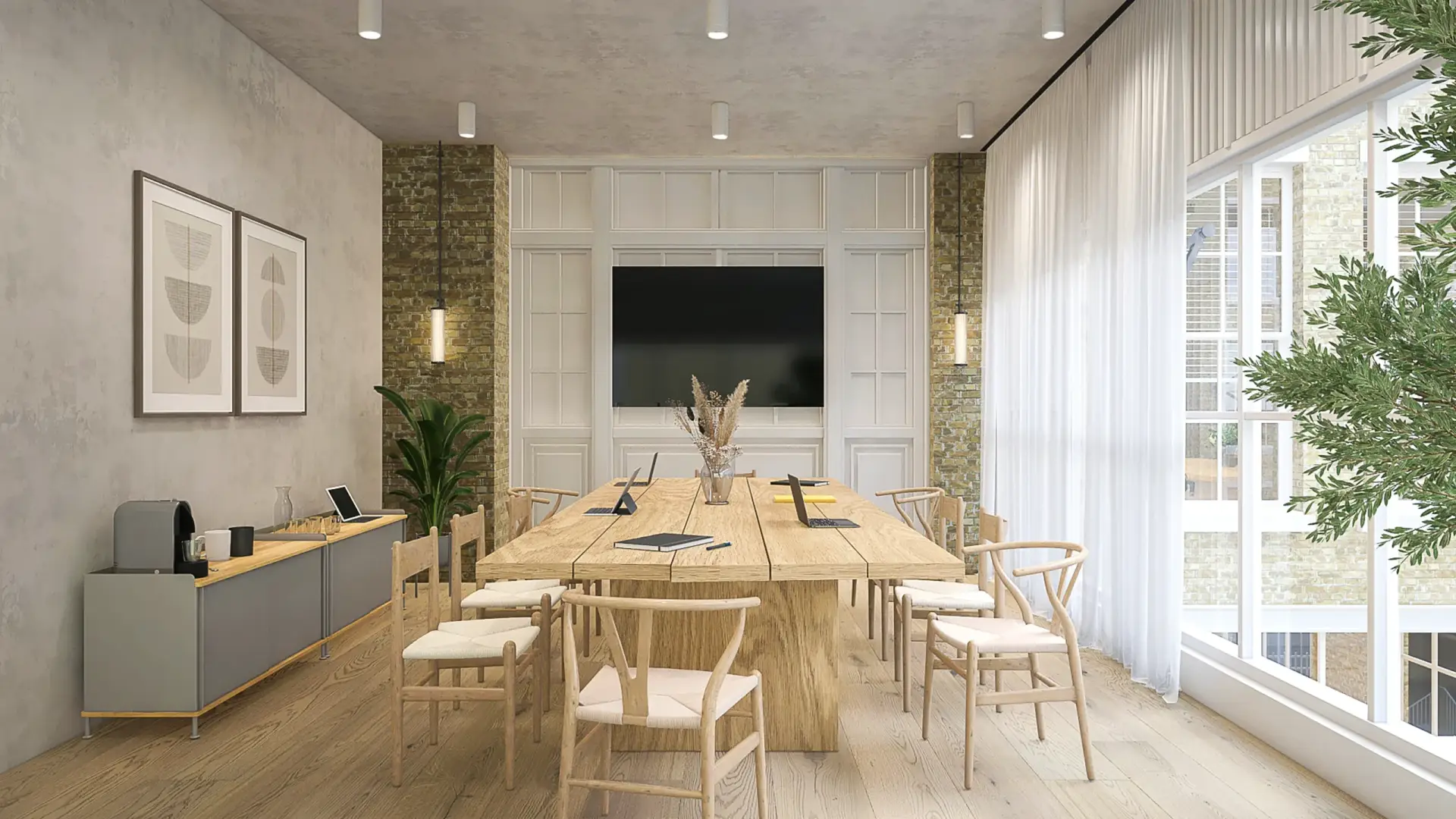 Through photorealistic interior CGI and architecture-led workspace visualisation, key features such as the sculptural staircase and open-plan layout are brought to life. Natural light flows through the space, enhancing texture and depth while supporting a calm, collaborative atmosphere.