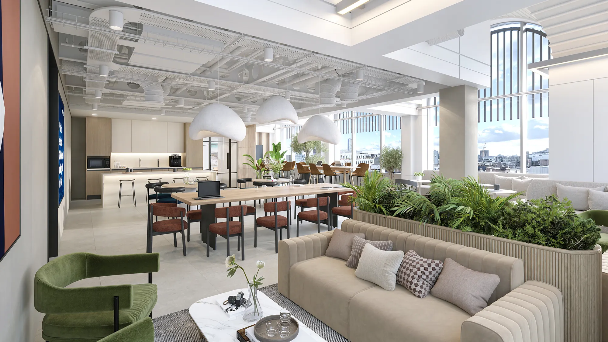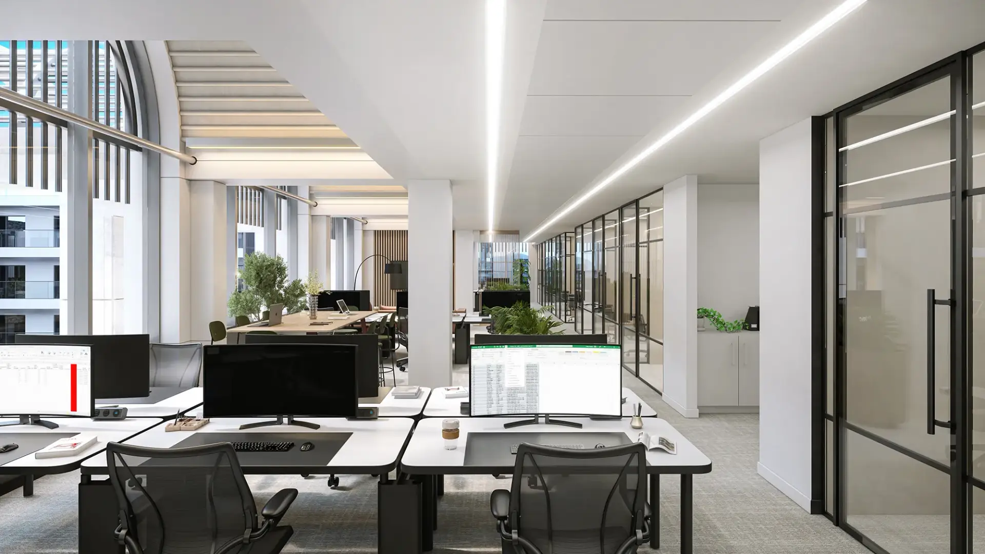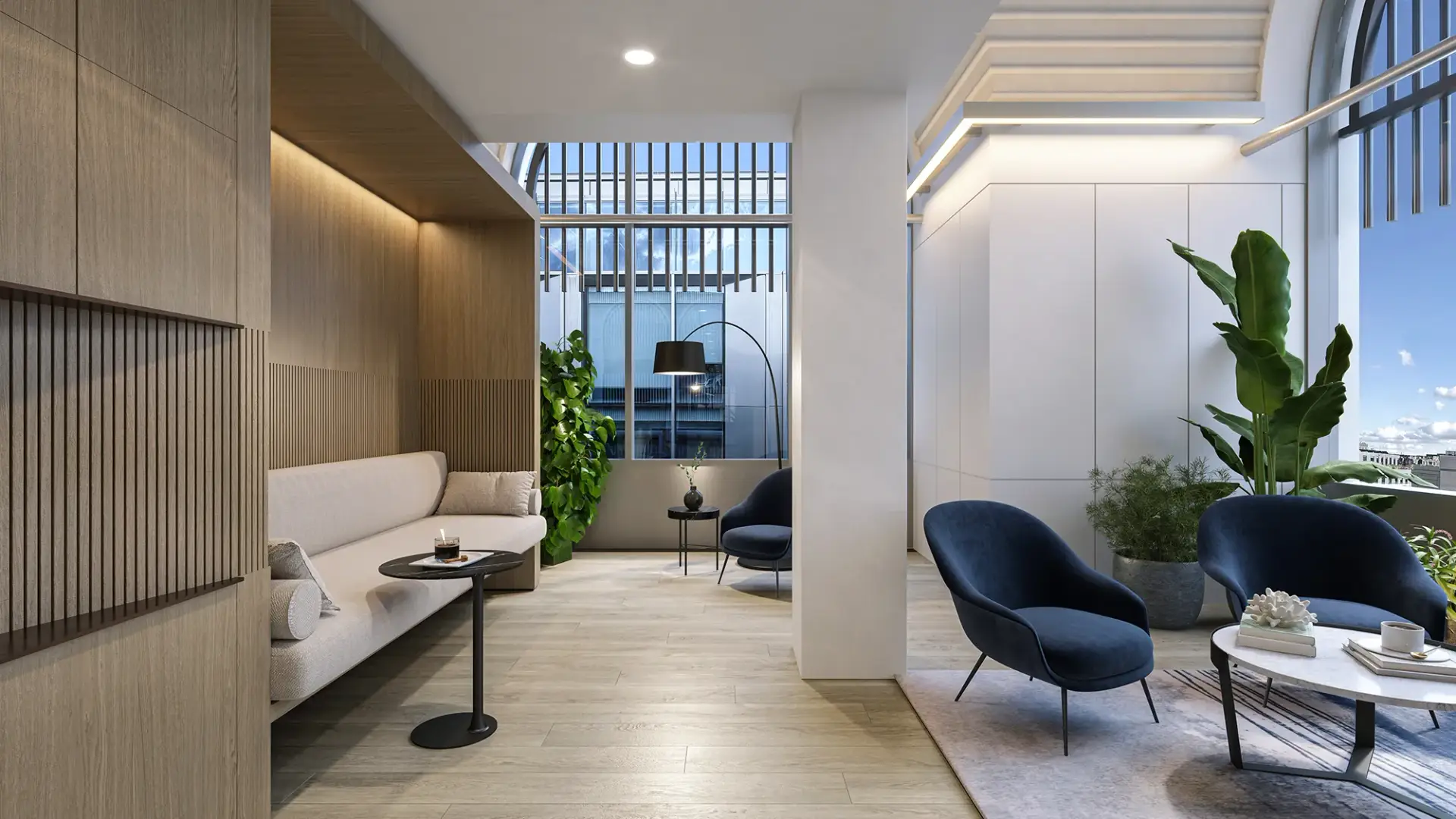 We craft photorealistic architectural imagery that reflects how spaces truly feel—calm, balanced, and intentional. From open-plan workspaces to refined reception areas, every composition is driven by symmetry, clean lines, and natural material palettes.